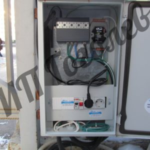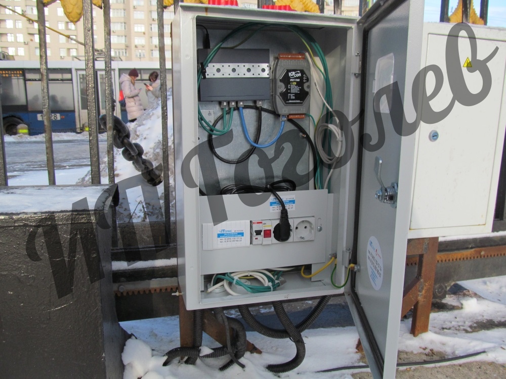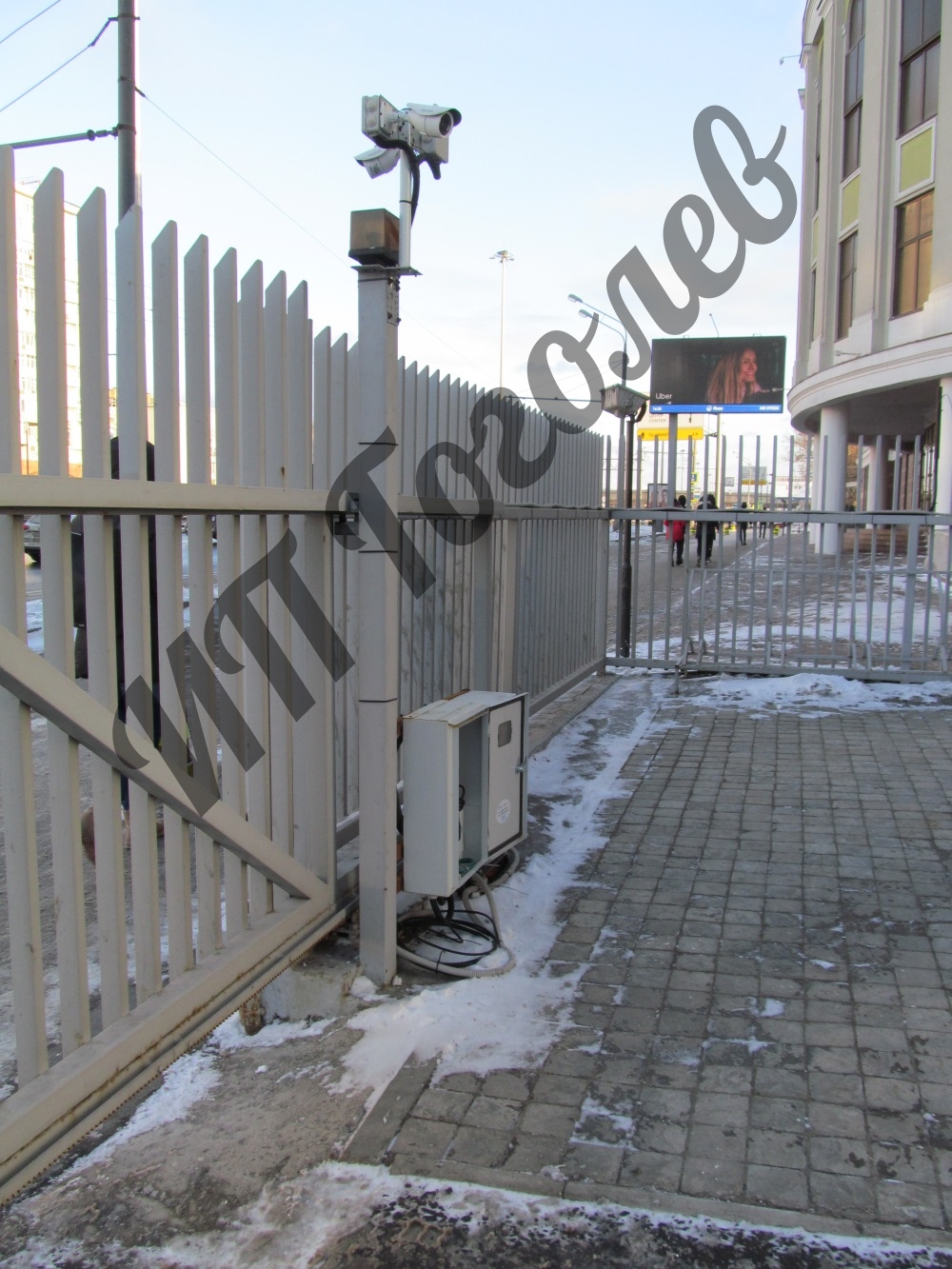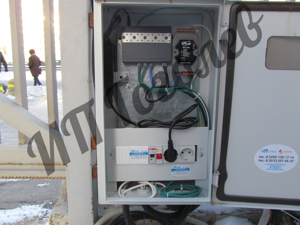 Состав системы: 4 видеоканала распознавания (по 2 на каждый проезд), 2 шкафа автоматики, сервер Автомаршал в помещении охраны.