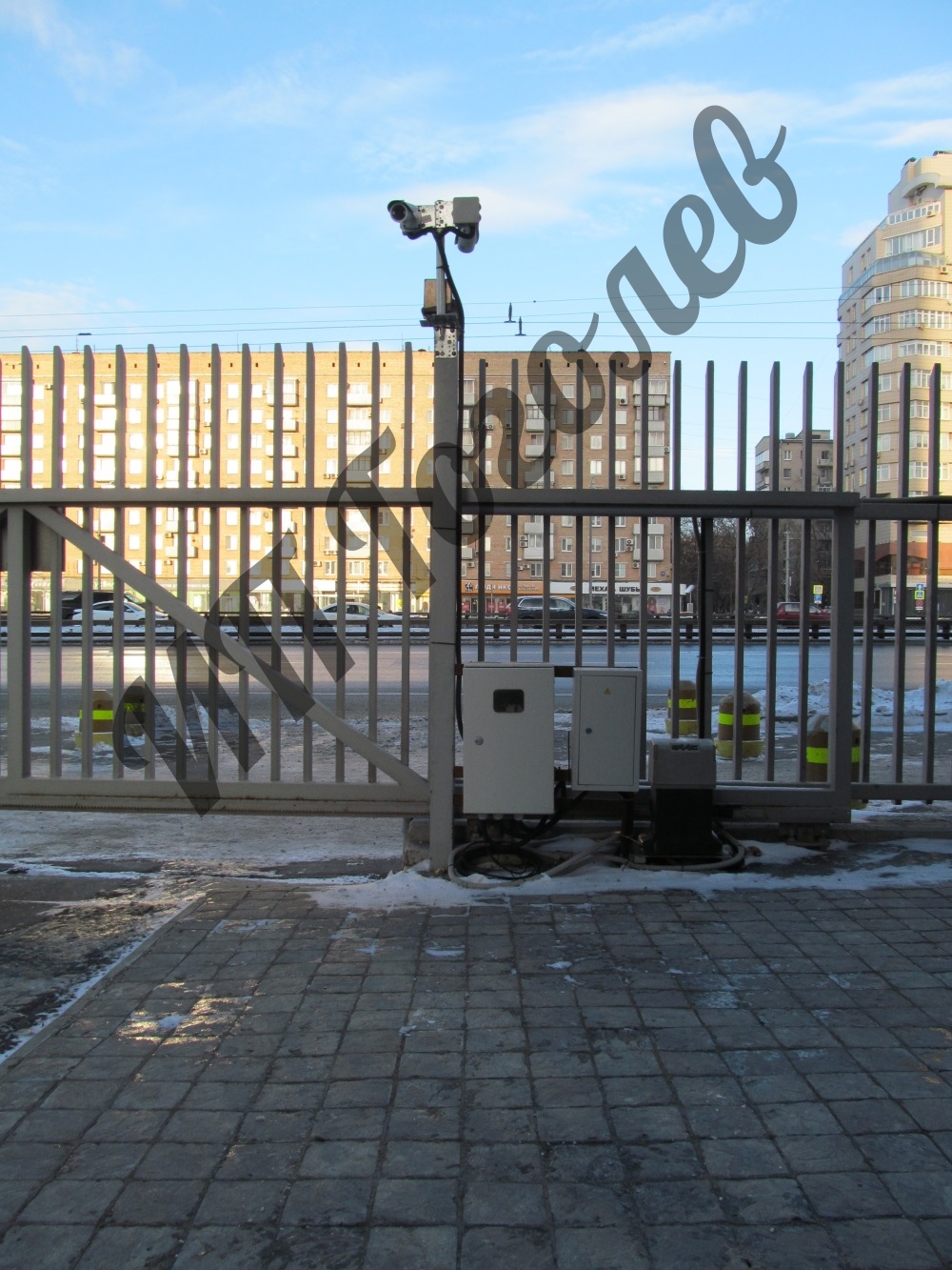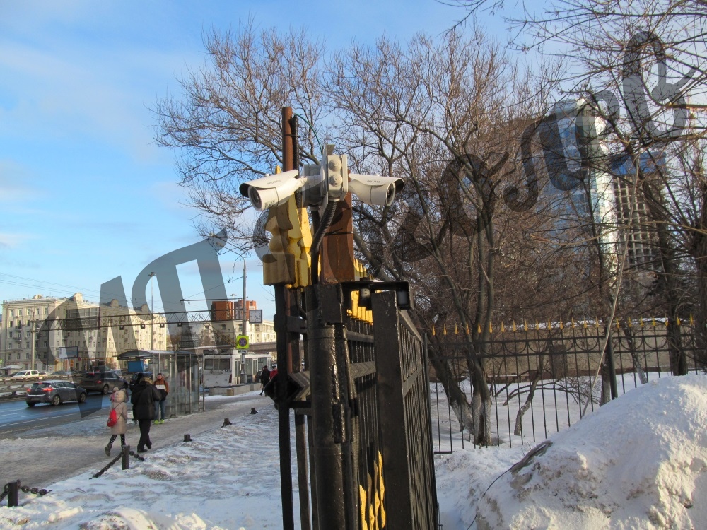Установка 4-канальной системы Автомаршал на территории парковки для контроля и учета движения автотранспорта.